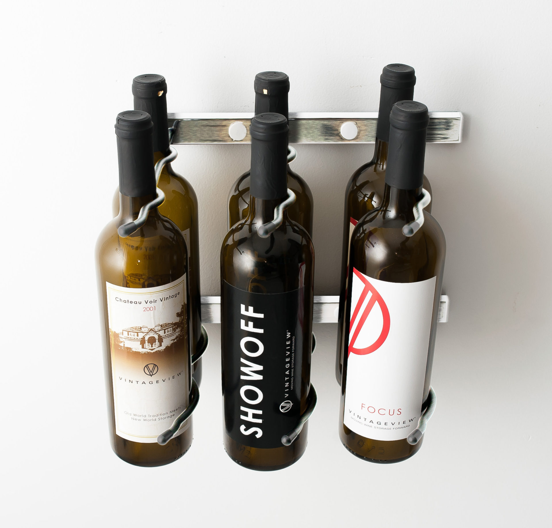 El botellero de metal y estante para botellas de la serie W1 es un estante de vino de pared para 3 botellas que transforma cualquier pared, por pequeña que sea, en un moderno diseño centrado en las etiquetas de las botellas. Con una altura de solo 30,5 cm (12 pulgadas) y disponible en tres profundidades de botella, nuestro compacto soporte metálico para botellas encaja en cualquier lugar limitado por la altura, incluidos bares, mostradores de cocina y despensas. Nuestros soportes de pared de la serie W son apilables (utilizando los acopladores suministrados). Se pueden cortar a medida, lo que permite múltiples configuraciones para cualquier proyecto de espacio para vinos. Elegida por los mejores constructores de bodegas y profesionales del diseño, la Serie W es ideal para aplicaciones residenciales y comerciales.
