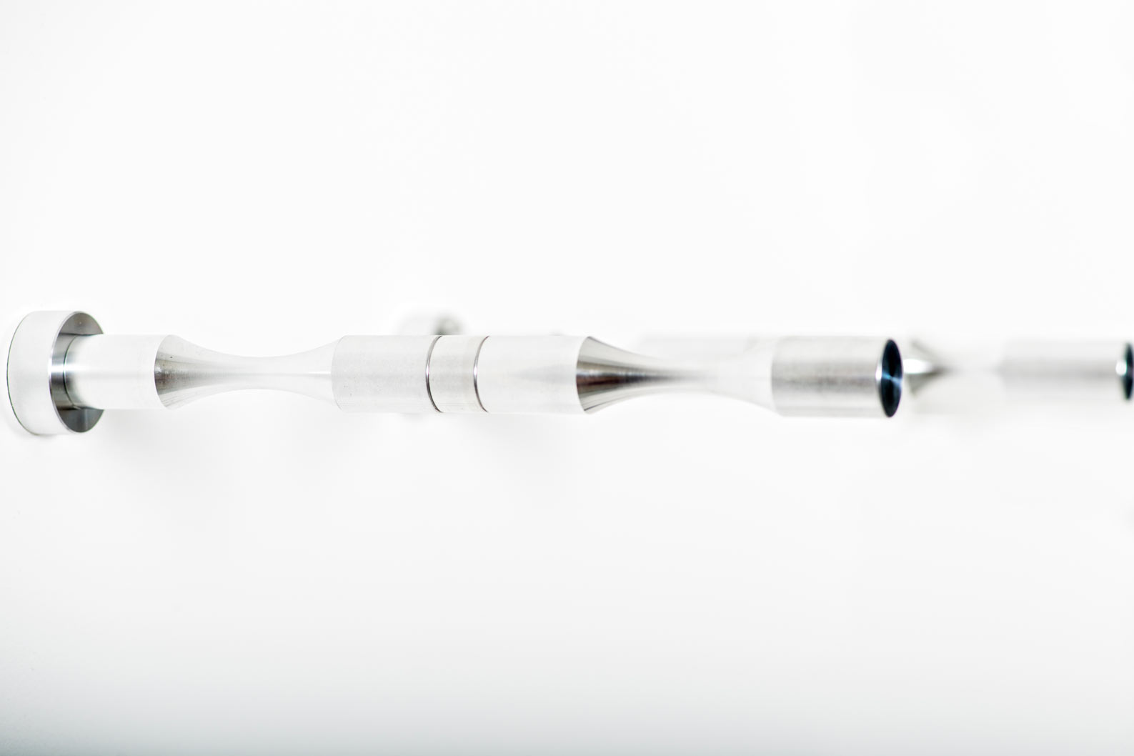 El espaciador Vino Pins para soportes de botellas mágnum se fija entre un juego de inicio Vino Pins (se vende por separado) y un conjunto de ampliación Vino Pins (se vende por separado) para permitir una configuración de botellas mágnum o de champán de doble profundidad.
