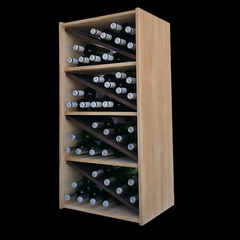 Botellero de madera para 48 botellas Monastrell. Gran capacidad, diseño funcional y disponible en acabado uniforme o bicolor. Modelos 351717 y 371717.