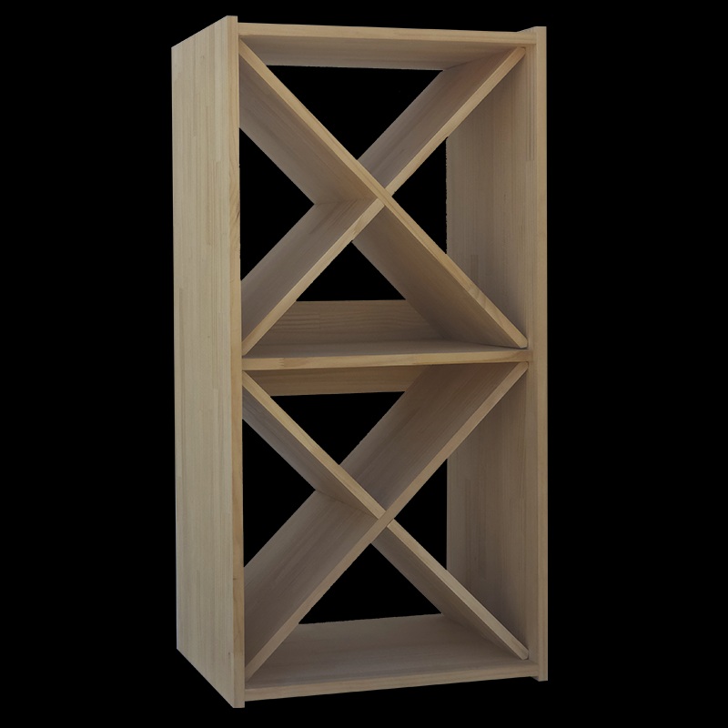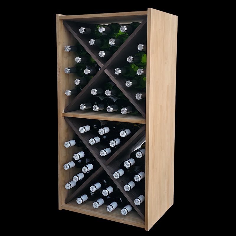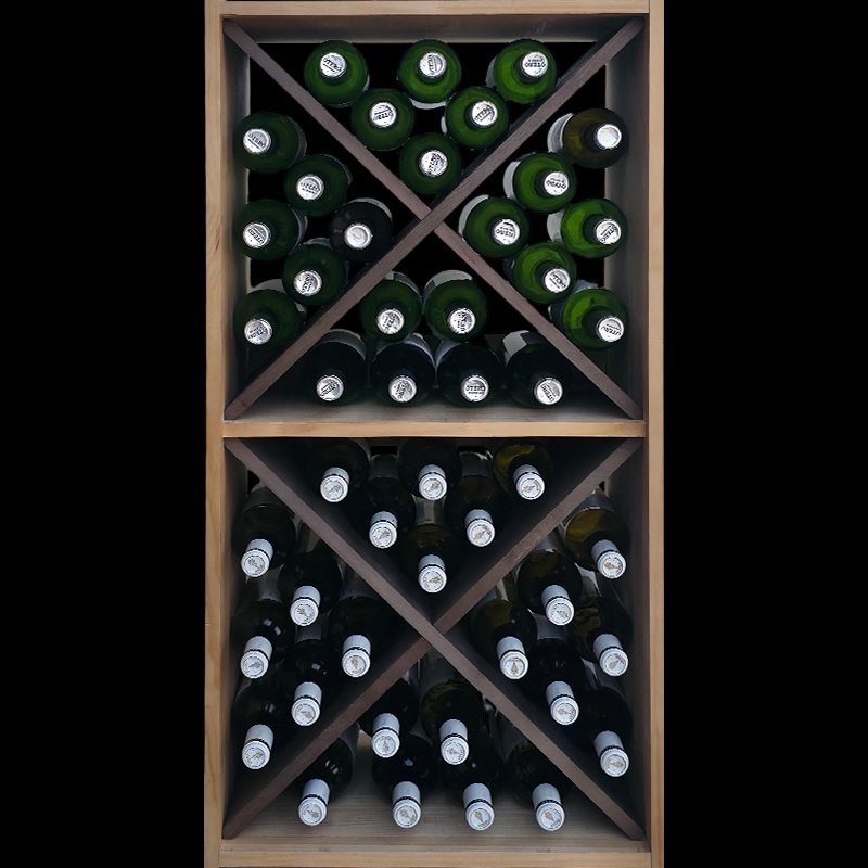 Estantería botellero Monastrell de madera para 48 botellas. Diseño organizado, elegante y modular. Disponible en acabado uniforme o bicolor. Diseño modular. Modelos 356062 y 376062.